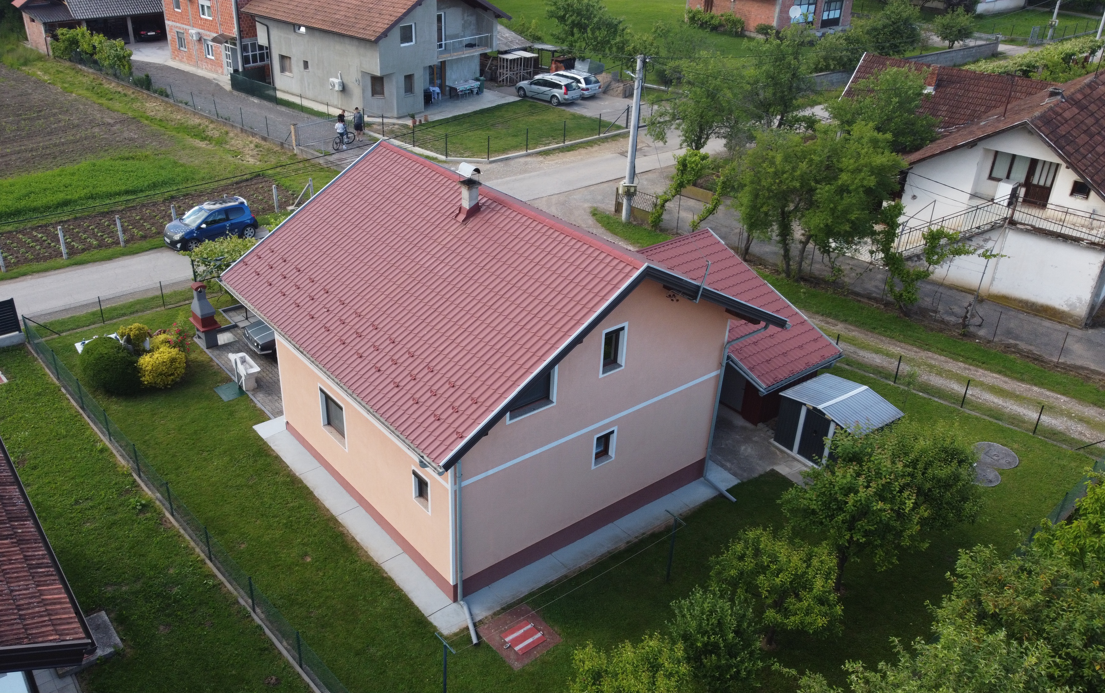 Na zadnjoj strani kuće se nalazi manji voćnjak, sa nekoliko zasađenih jabuka i krušaka.