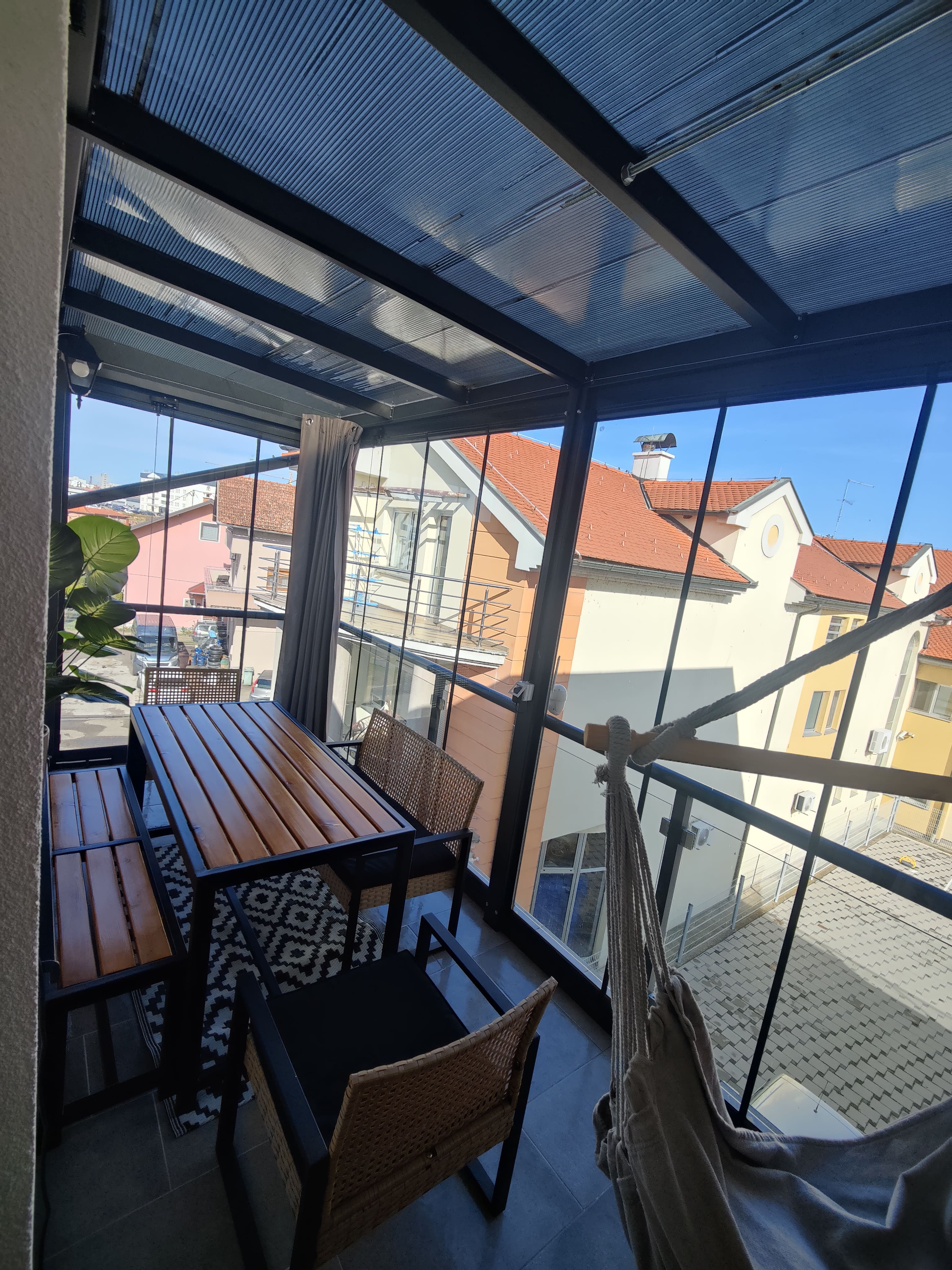 Stan je kompletno opremljen novim, modernim namještajem (opcija kupovine sa ili bez namještaja) i ističe se visokim stepenom kvaliteta završne obrade. Opremljen je podnim grijanjem i savremenim klima uređajem sa funkcijom grijanja i hlađenja, čime se osigurava ugodan boravak tokom cijele godine. Balkon je stručno natkriven i zatvoren, pretvoren u dodatni praktičan prostor koji se može koristiti kao kutak za odmor, radna zona ili produžetak dnevnog boravka.