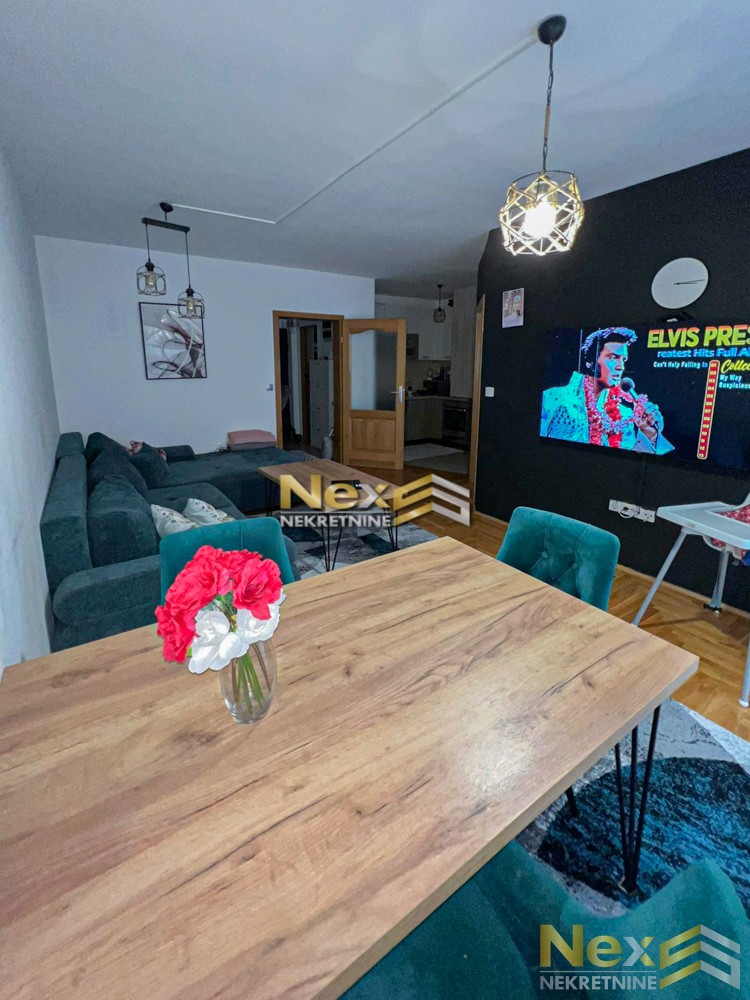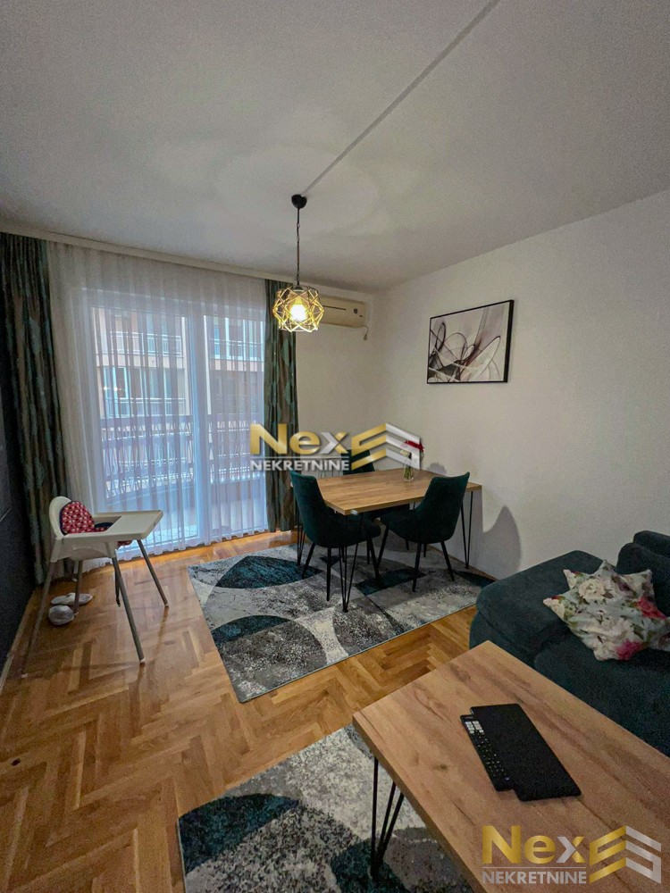 Prodajemo namješten dvosoban stan površine 43,53 m2, pozicioniran na devetom spratu stambene zgrade sa dva lifta u naselju Stup - Tibra II.