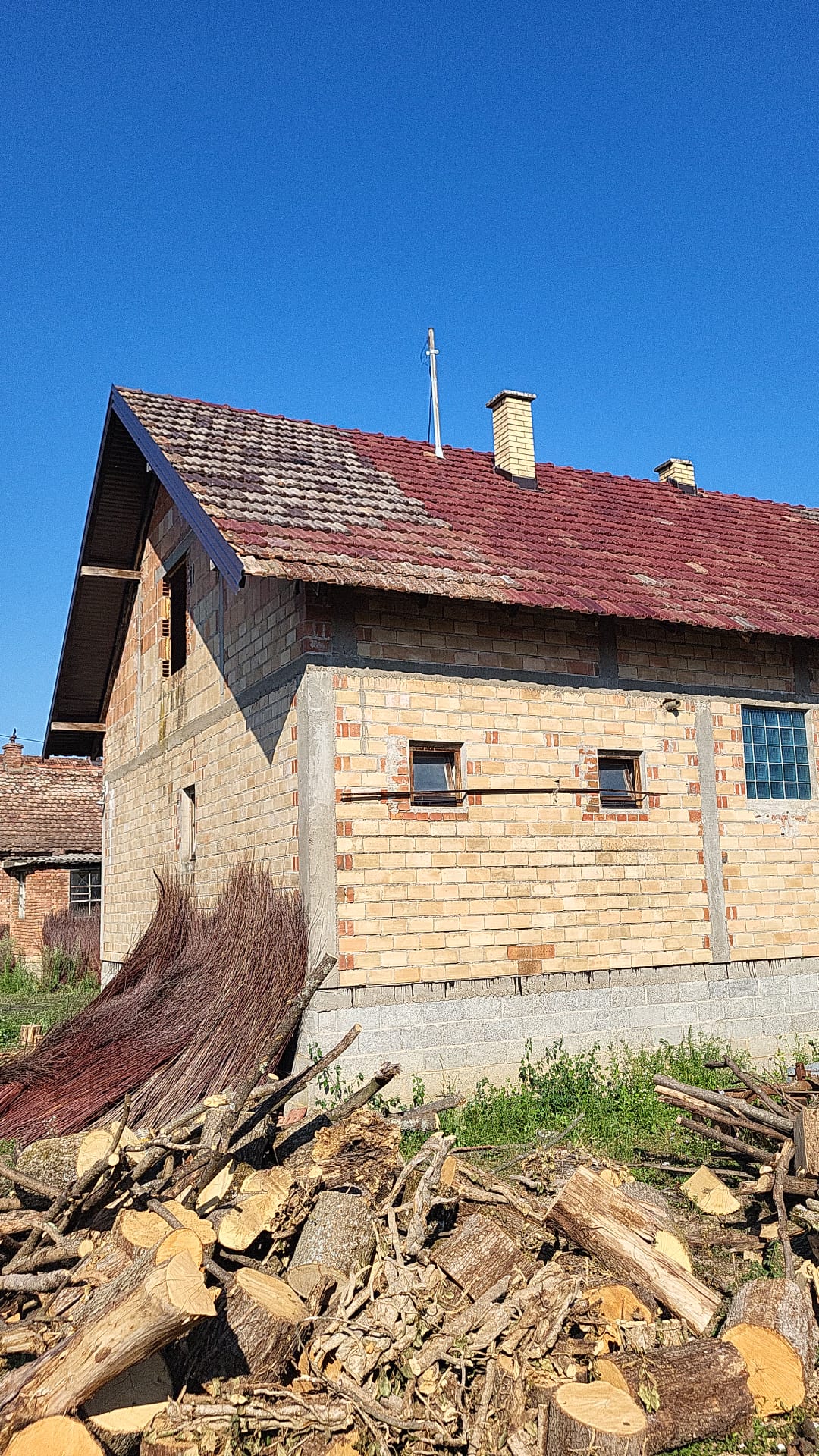 Prodaje se neuseljena obiteljska kuća s okućnicom (1989. god.), dvorišnom zgradom (štagalj), i starom kućom sa garažom. Nema priključak za vodu, ali ima pristup pumpi u dvorištu koja crpi čistu vodu s 38 metara dubine. Treba riješiti septičku jamu i hidrofor. Čelične vodovodne cijevi su provedene kroz obiteljsku kuću do 4-5 m udaljenosti od pumpe. Obiteljska kuća se sastoji od visokog prizemlja (2 spavaće sobe, kuhinja s dnevnom sobom, ostava, kupaona s toaletom i spremištem ispod stepenica), potkrovlja (2 spavaće sobe s ostavama i tavan), podruma i 2 balkona bez ograde. Obiteljska kuća je pogodna za život 5-6 članova. Nasuprot nove kuće je stara kuća (nasljeđevina; građena 1970.) s 2 spavaće sobe, kuhinjom, verandom i šupom. Iza obiteljske kuće je štagalj sa šupom, štalom, sobicom i ostavom za sijeno. Okućnica je 1.5 dulum, a ostatak zemljišta se sastoji od oranice (3.5 duluma) i bare Tolisa (1 dulum; koja nije u vlasništvu, ali je dopušteno njezino korištenje). Zemljište je pogodno za uzgoj povrća, voća i žitarica. Cijena po dogovoru.