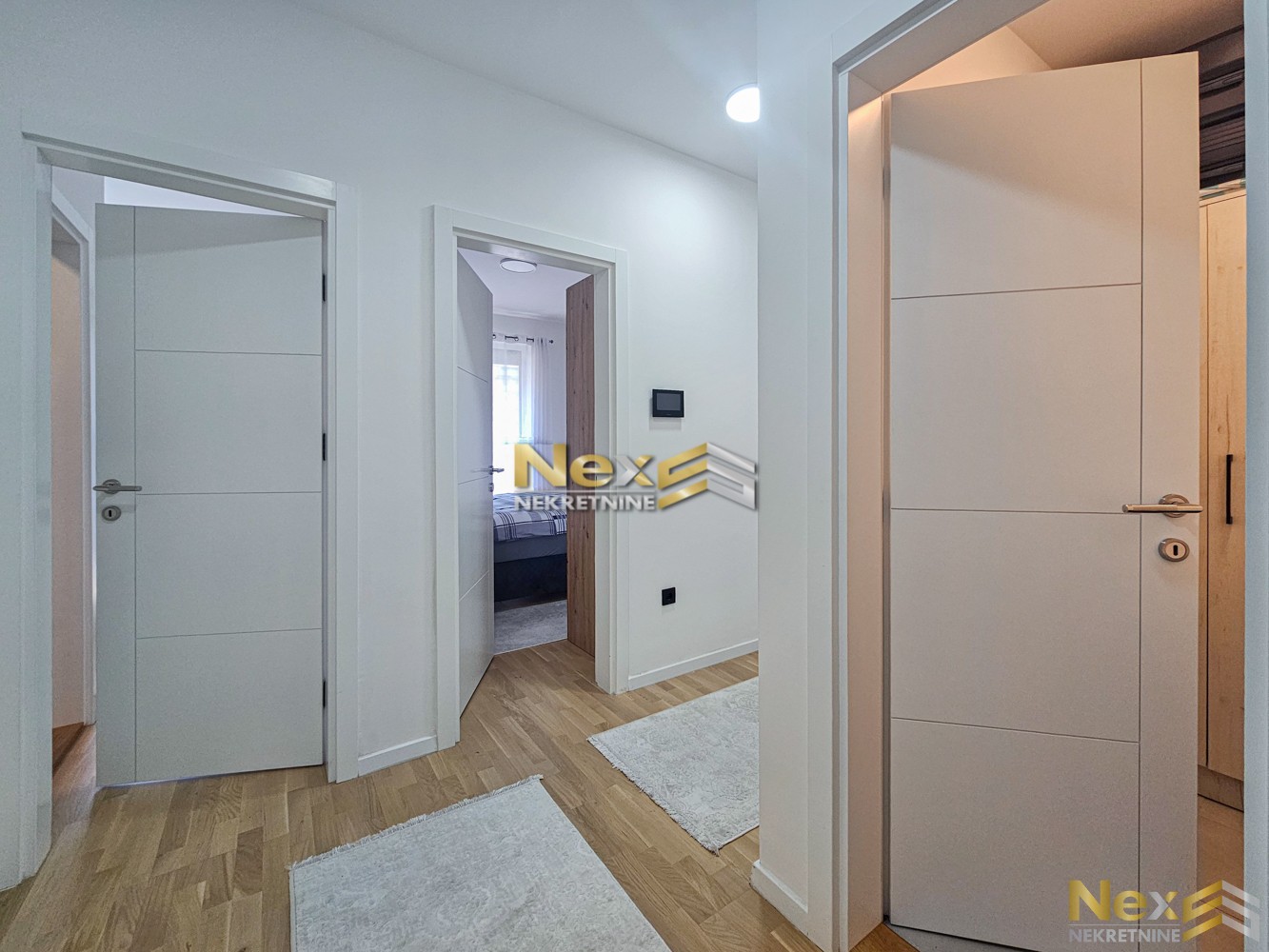 Nov stan korišten svega nekoliko mjeseci. Vanjska PVC stolarija sa ALU vanjskim roletnama. Unutrašnja stolarija je drvena. Komarnici. Blindo ulazna vrata. Na podovima se nalaze keramičke pločice i parket. Video nadzor. Dvije klime. Etažno podno grijanje. Audio interfonski sistem. Mogućnost WIFI daljinske kontrole.