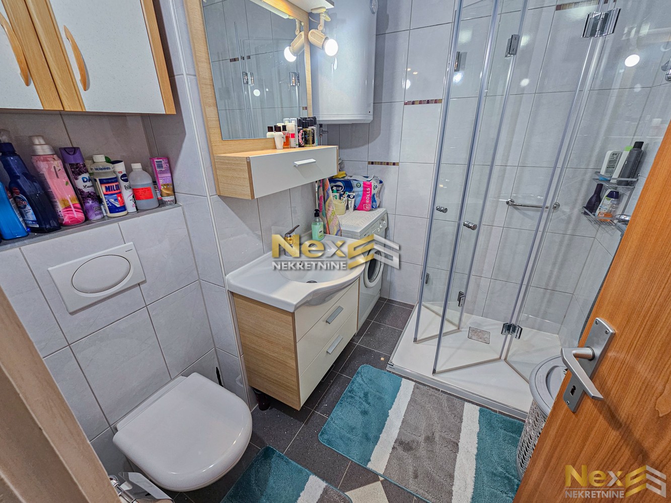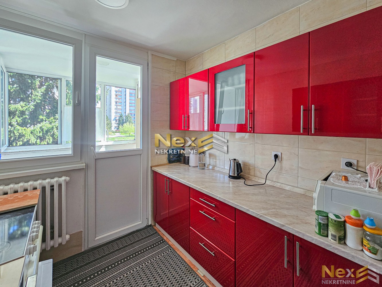 Na podovima je laminat postavljen preko parketa. Unutrašnja stolarija je drvena, a vanjska PVC stolarija sa komarnicima i PVC vanjskim roletnama, keramičke pločice u kupatilu, kuhinji i predsoblju, blinda vrata, grijanje centralno (Toplane), dvije inverter klime. Interfon.
