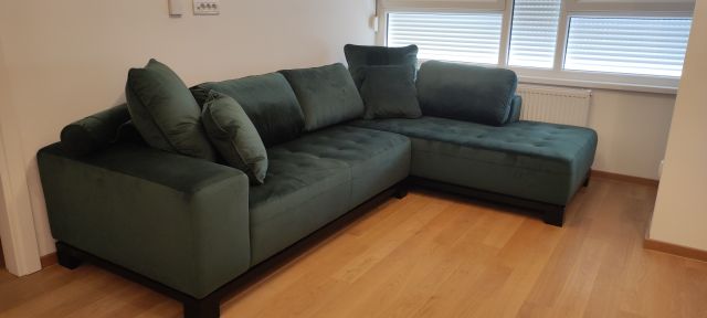 Kompletan namještaj je rađen po mjeri, uz korištenje kvalitetnih i dugotrajnih materijala. Stan je opremljen premium namještajem i uređajima – od vrhunski udobnog madraca do kvalitetne ugaone garniture renomiranog proizvođača.