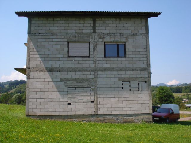 Objekat posjeduje gradjevisnku dozvolu. Prvi sprat namjenjen za poslovni prostor povrsine 120 m2 i uradjeni grubi radovi, drugi sprat ima 3 sobe kuhinju i kupatilo opremljeno za stanovajne, treci sprat ima 3 sobe kuhinju i kupatilo neopramljeno. Objekat se nalazi kraj magistrale udaljen od Blatnice prema Okrugloj 1km. Ima trofaznu struju i vlastitu vodu