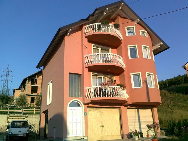 2-SPRATA i POTKROVLJE.Sa lica kuce se nalaze 3 BALKONA,a sa zadnje strane