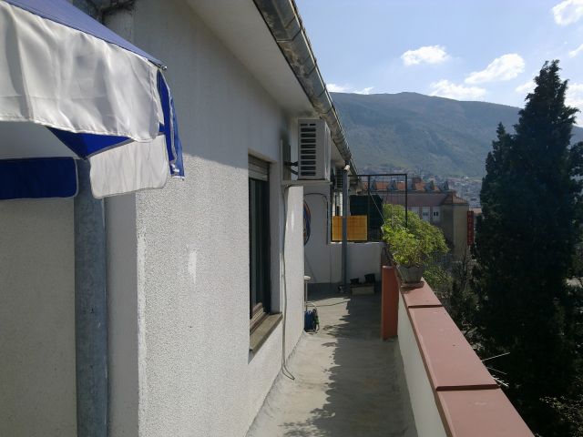 Prodajem stan u samom centru Mostara u Ulici Kneza Domagoja (preko puta hotela Mostar). Stan ima 93m2, te se sastoji iz: dnevne sobe, trpezarije i kuhinje, 3 spavace sobe, kupatilo, hodnik, i velikim balkonom koji se prostire duž cijelog stana. Stan se nalazi na 3. spratu, orjentacija sjever-jug te posjeduje i podrum. Dnevna soba sa trpezarijom i kuhinjom odlično je osunčana i gleda na južnu stranu. Zgrada je stara cca 40 godina. U obzir dolazi i zamjena za manji stan (do 60m2) uz vašu nadoplatu, u Mostaru ili Sarajevu. Stan je idealan za renoviranja i nadogradnje po vašoj želji.