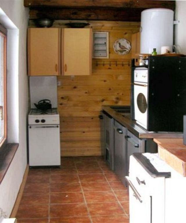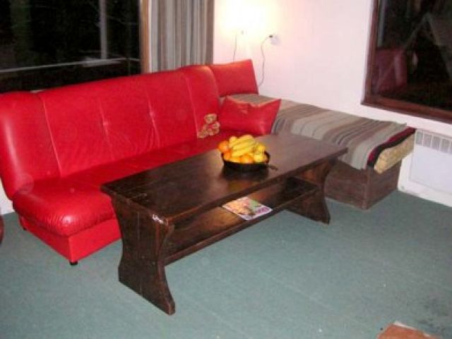 - Donji, površine oko 36 metara kvadratnih se sastoji od ulaznog hodnika sa mjestom za odlaganje skija, velikog dnevnog boravka i kuhinje.