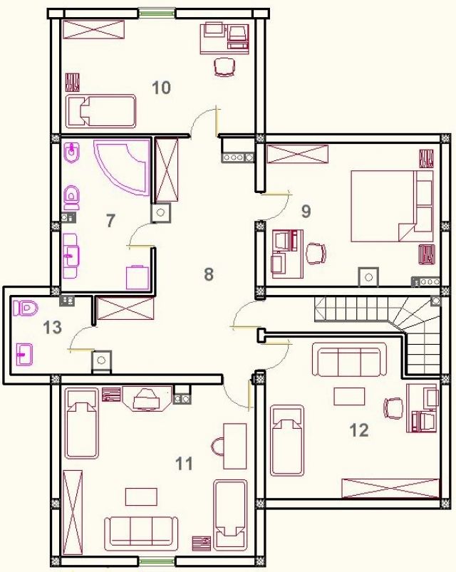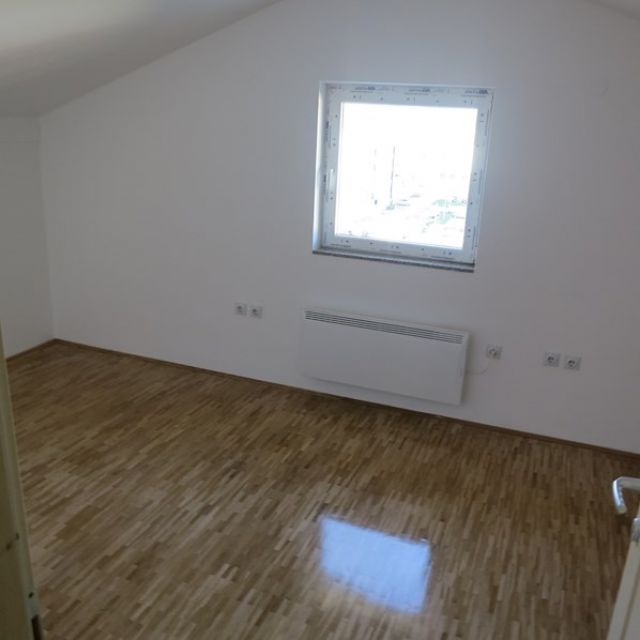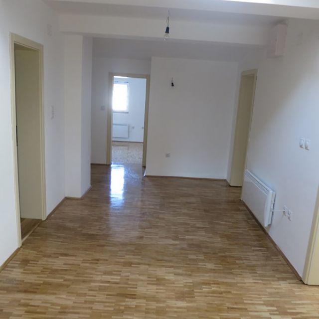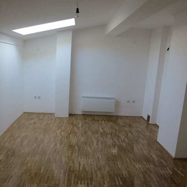 Dvoetažni petosoban stan na 4. spratu koji izlazi na potkrovlje. Sadrži dva kupatila, jedan VC, 2 balkona i kuhinju. Sanitarije su vrhunske (kada sa masažerom, ugradbene šolje itd.). Dnevni boravak je na sunčanoj strani.