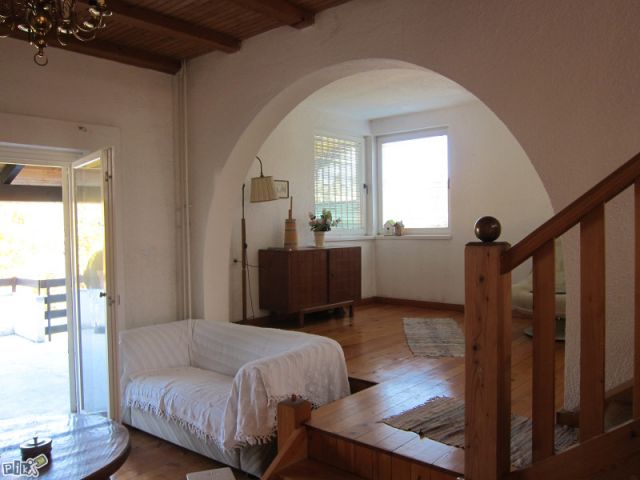 Kuća posjeduje 2 ulaza, 2 predsoblja, hodnik, 2 dnevna boravka, kuhinju, sobu za ručavanje, 2 kupatila, 4 spavaće sobe, dvije terase, 2 podruma i veliku garažu.