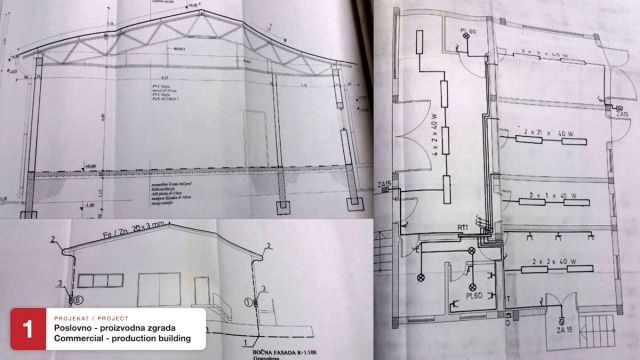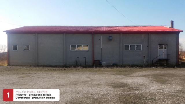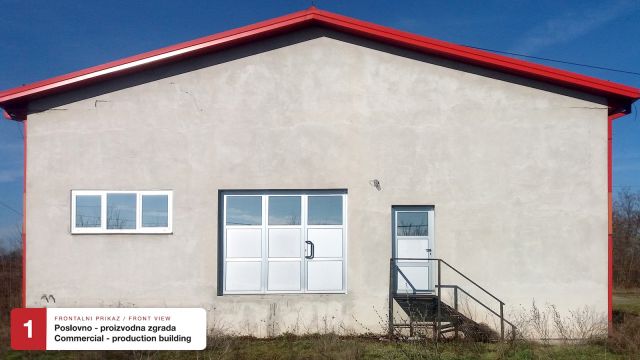 1. Poslovno / proizvodna zgrada (373m2), izrađena po najvišim građevinskim standardima (plac oko zgrade 1163m2):
