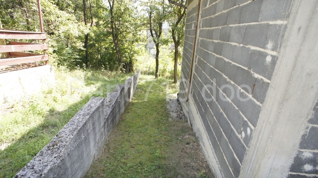 Podrum ima struju i vodu kao i odvod, vanjskim natkrivenim stepenicama na sprat, gdje je ulazni hodnik-terasa, lijevo je ulaz u kuću jedna velika prostorija u kojoj je kuhinja, dnevna soba i unutarnje stubište za sprat koji je jedna prostorija. Wc sa kupatilom je na ulazu u dnevnu sobu, a veš kuhinja je u podrumu. Kuća je komplet urađena i useljiva sa svim potrebnim za normalan život.I ako je plac uz glavni asvaltirani put, ima još jedan prilaz koji je za plac do, koji se isto može kupiri kao i plac iznad. iznad kuće je zaravan koja je ugdna za sjediti u hladu. Od radova na kući je ostalo da se stavi fasada.