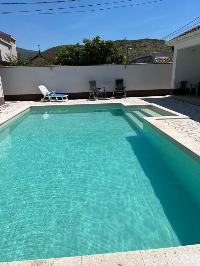 Agencija Lemond Nekretnine nudi Vama kuću sa bazenom i apartmanom na obali rijeke Bune u naselju Blagaj. Apartman sa bazenom se nalazi na parceli veličini 395m2. Apartman je veličine 45m2 +10m2 terase. Sastoji se od spavaće sobe, dnevnog boravka sa kuhinjom te toaletom. Opremljen je najsuvremnijom tehnikom( elektricni podizači roletni, videonadzor, klima, podno grijanje…).
