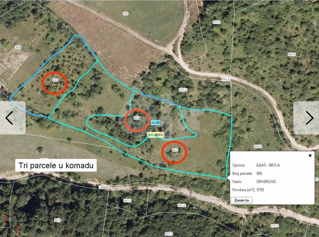Zemljište se nalazi u Gornjoj Bioči kod Ilijaša na nekoliko parcela. Prva parcela je u centru a počinje od spomenika koja je obilježena od strane geometra pod nazivom kuća i okućnica. Ostale parcele su u neposrednoj blizini. Kroz parcele protiče potok, Trafostanica na prvoj parceli.Selo Gornja Bioča, opština Ilijaš (youtube.com)