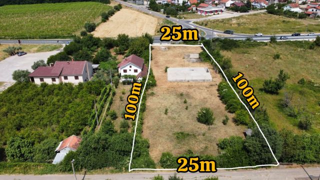 Na prodaju je zemljište površine 2500 m² ( 25x100m) u Mostaru ( Žitomislići ), uz glavnu cestu M17 i naselja, sa uknjiženom kućom od 600 m².