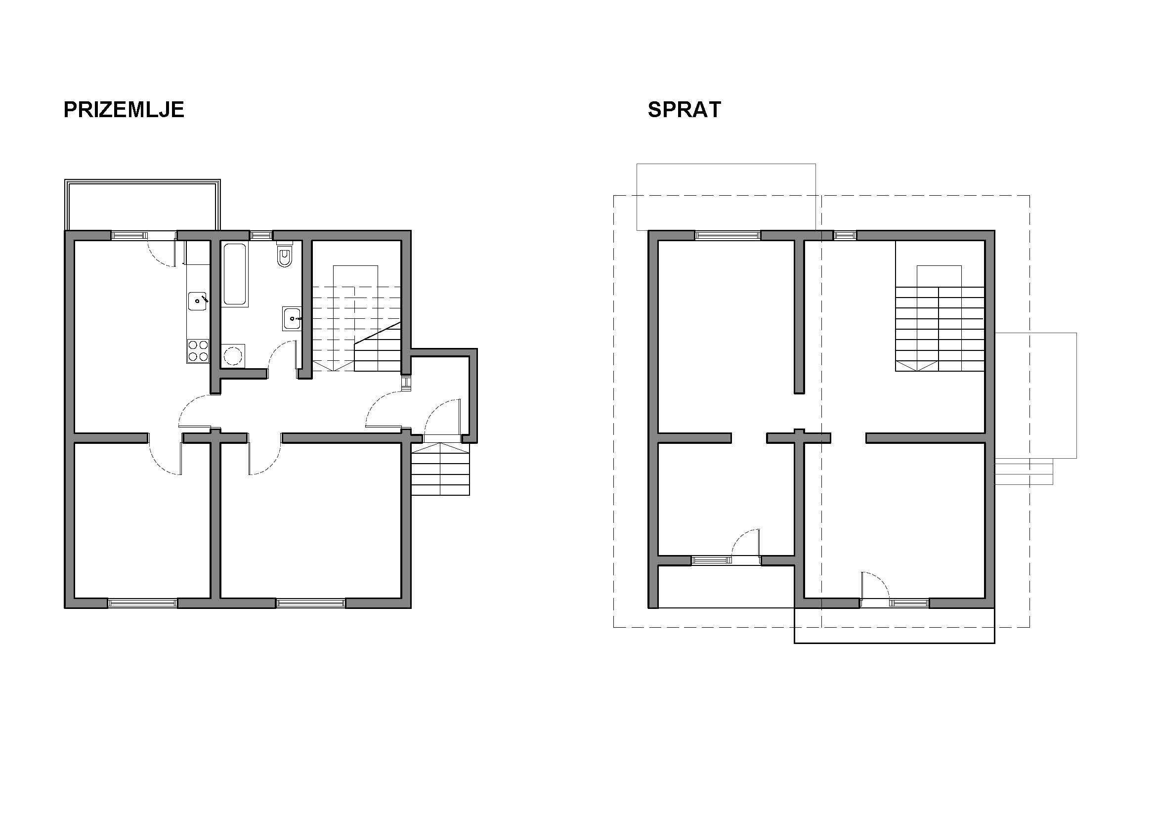 Gornji nivo je nedovršen, tri sobe, kupatilo i dve terase.