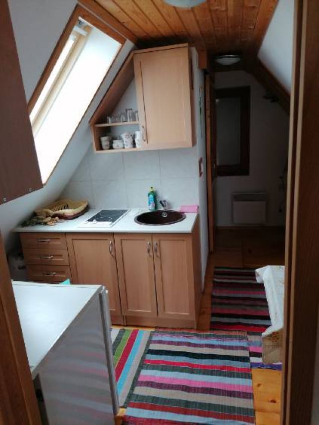Svaki apartman ima svoju kuhinju i kupatilo. U prizemlju je apartman za 4 osobe + dodatni ležaj ispod kreveta. U prvom spratu je apartman za 6 osoba. Dva ležaja u dnevnom boravku i četiri ležaja u sobi. U potkrovlju su dva bračna kreveta, tako da mogu spavati 4 osobe. Postoji mogućnost, da se potkrovlje iznajmi samo za dvije osobe. Svaki sprat ima balkon a u prizemlju je pokrivena terasa sa klupom i stolom gdje se može i roštiljat. Na terasu se ulazi iz dnevnog boravka ili dvorišta. Vikendica ima natkrivenu garažu za jedno vozilo i dva parkirališta na dvorištu. Uz terasu ima betonsko korito za vodu i igrala za djecu. U prvom apartmanu nalazi se mašina za pranje veša i posude. Grijanje je centralno na tvrda goriva, u svakoj prostoriji ima i radijator na elektriku.