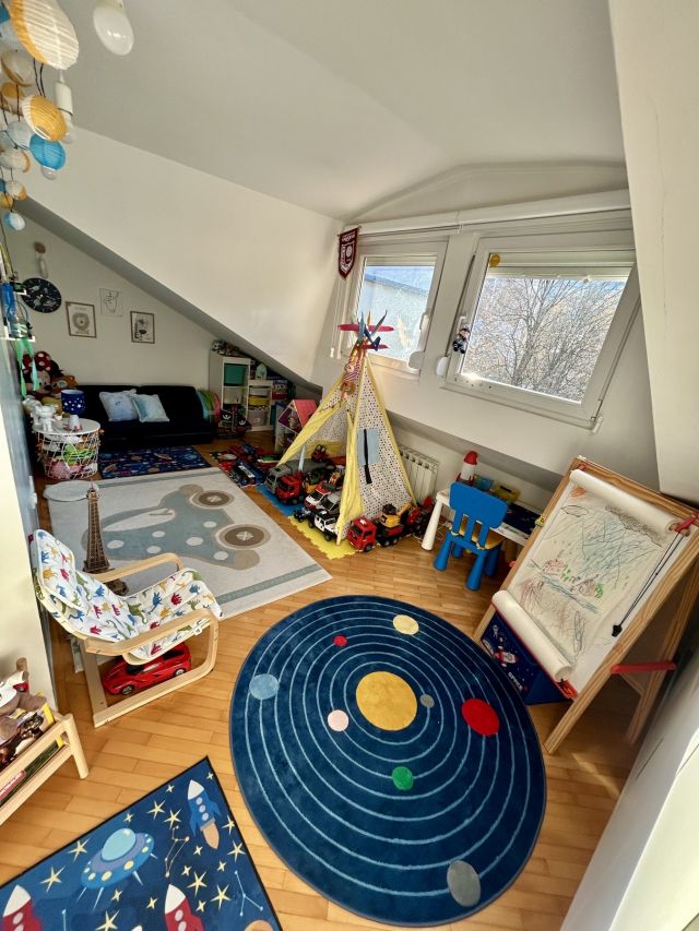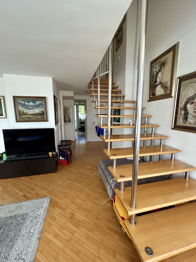Stan je površine 125 m2 i nalazi se na V spratu stambene zgrade. Po strukturi je šestosoban, dvoetažni stan.