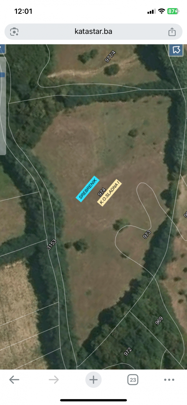 Prodaja zemljišta površine 14 dunuma i 800 kvadrata šume,parcela 973 i 974. Zemljište na lokaciji Sladna. Površina obradiva i idealna za vikendicu. Prilaz moguć autom, makadamski put.