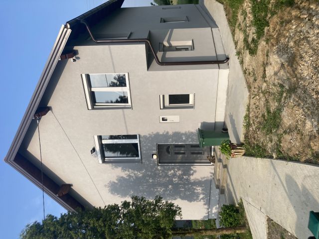 Kraj glavnog puta,na ravnoj Povedi I,sve ogradjeno u zicu,gradska voda,bunar za navodnjavanje,struja,grijanje,klima,dva kupatila uradzena,gornji sprat sobe,donji sprat dnevni boravak,trpezarija ,kuhinja i kupatlo